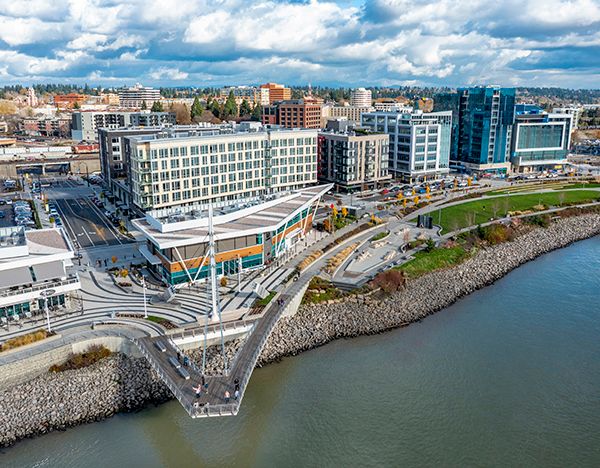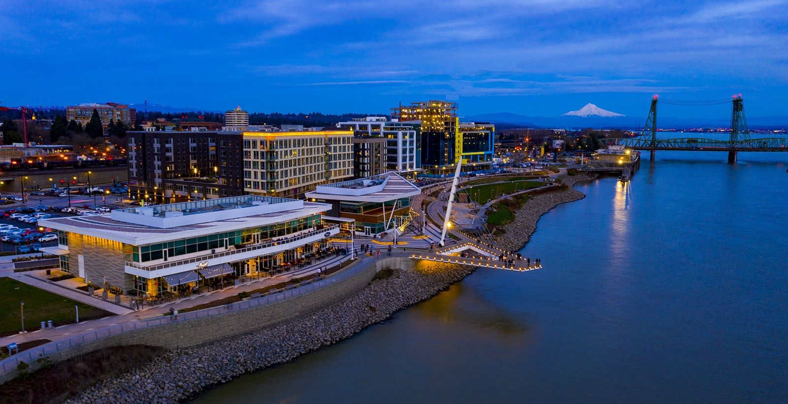 The Waterfront Vancouver has become Vancouver, Washington’s largest commercial, urban development to date, bringing a vibrant mix of retail, living and green spaces to the city, as an extension of the downtown core’s reconnection to the mighty and majestic Columbia River. By reclaiming nearly 32 acres–in 20 city blocks–of available property, the planned, environmentally conscious design reflects the spirit of the Pacific Northwest with accessible, urban-friendly space and ample transportation links to the city, region and world beyond. With an estimated 2030 completion date and $1.6 billion in direct investment and costs underway/projected, The Waterfront Vancouver will deliver the total output value of $6.1billion in 2022-measured dollars. Hansen Architecture led the master plan design for more than 3,000 housing units, 10 park acres, more than 386,000 square feet of office space, 235,000 square feet of retail, and hospitality space. The first phase, which broke ground in 2016, created a prominent entry from downtown and provide a dynamic entertainment and service district along the waterfront.